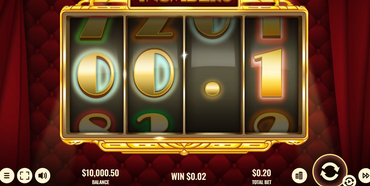 Grazie al suo gameplay originale, la slot 4 Numbers porta una ventata di freschezza nel mondo delle slot. La griglia a 4 rulli ha un’unica linea di pagamento e anziché i classici simboli a cui siamo abituati, accoglie soltanto i numeri da 0 a 9. Per calcolare le vincite vi basterà leggere il numero sui rulli e considerarlo come moltiplicatore. Per fare un esempio concreto, se sulla griglia appaiono i numeri 1-3-0-4, il moltiplicatore da applicare sarà 1.304x. Contando che sul terzo rullo l’unico numero che può comparire è lo 0, allora il moltiplicatore massimo applicabile è di 9.909x. Se lo 0 appare sul primo rullo, si dovrà cominciare il conteggio dalla seconda cifra, quindi, se trovassimo 0-1-1-2, il moltiplicatore sarebbe 112x. Non solo numeri interi però, perché se sul terzo rullo atterra un punto, allora questo dovrà essere inteso come decimale. A titolo di esempio, mettiamo il caso di ottenere 1-1-.-3, allora bisognerebbe calcolare 11,3x.