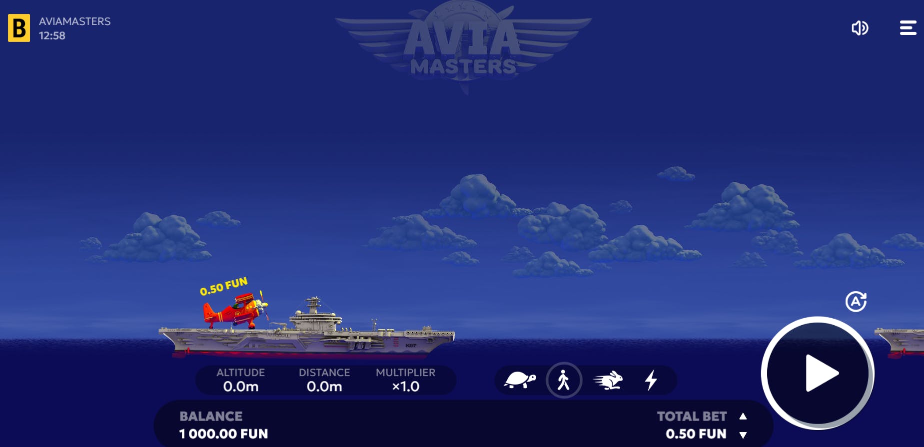 Aviamasters offre la possibilità di scegliere tra quattro velocità di volo e di usufruire dell’Autoplay per effettuare un tot di round continui.
