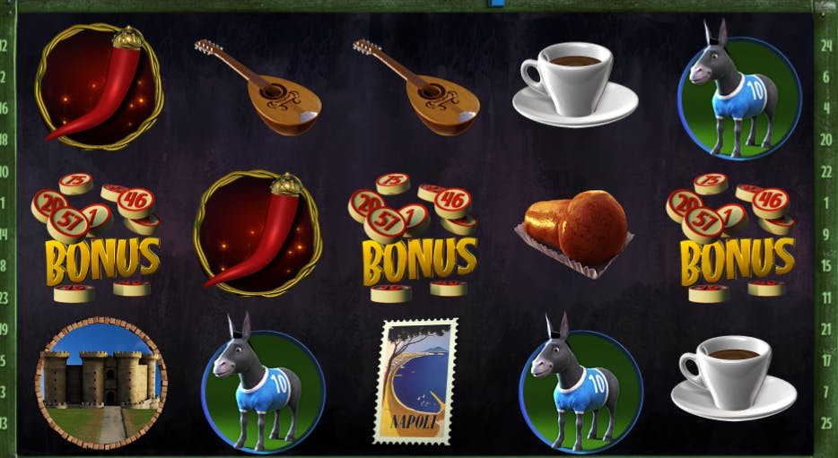 Capecod, provider di origine italiana, ha dedicato la slot Bella Napoli alla stupenda città campana. In questo gioco vi troverete a giocare con alcuni cliché che sono diventati parte della città, a partire dai fili pieni di panni che corrono da un balcone all’altro. La griglia di gioco 5×3 ha 25 linee di pagamento variabili, quindi sarete voi a decidere quante attivarne. I simboli in gioco sono quelli tipici di Napoli: il francobollo, il caffè, il babà, la pizza, il mandolino, il corno, l’asino con indosso la maglia numero 10 di Maradona e il castello Maschio Angioino. Le due varianti di Pulcinella sono Wild paganti, e sostituiscono tutti i simboli eccetto lo Scatter. Con 5 simboli della tombola si accede ai Free Spins, ma per sapere quanti ne spettano bisogna attendere l’estrazione dei numeri. Durante i giri gratuiti, Wild random atterrano sui rulli, contribuendo a creare numerose serie di simboli vincenti.