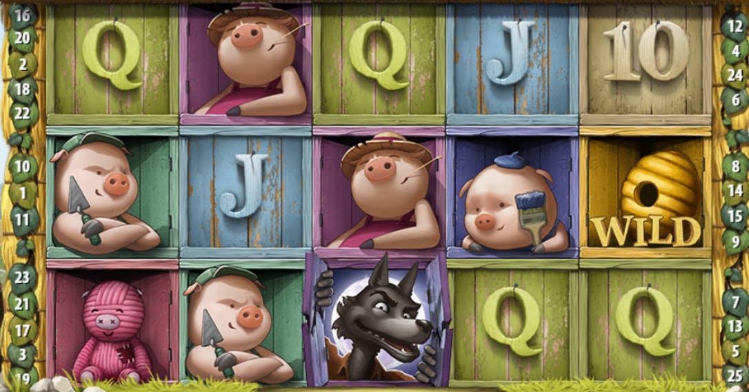 Per quanto riguarda la varietà dei simboli, il giocatore avrà a disposizione i classici semi delle carte da gioco, l’icona del maiale e i Tre Porcellini al gran completo.