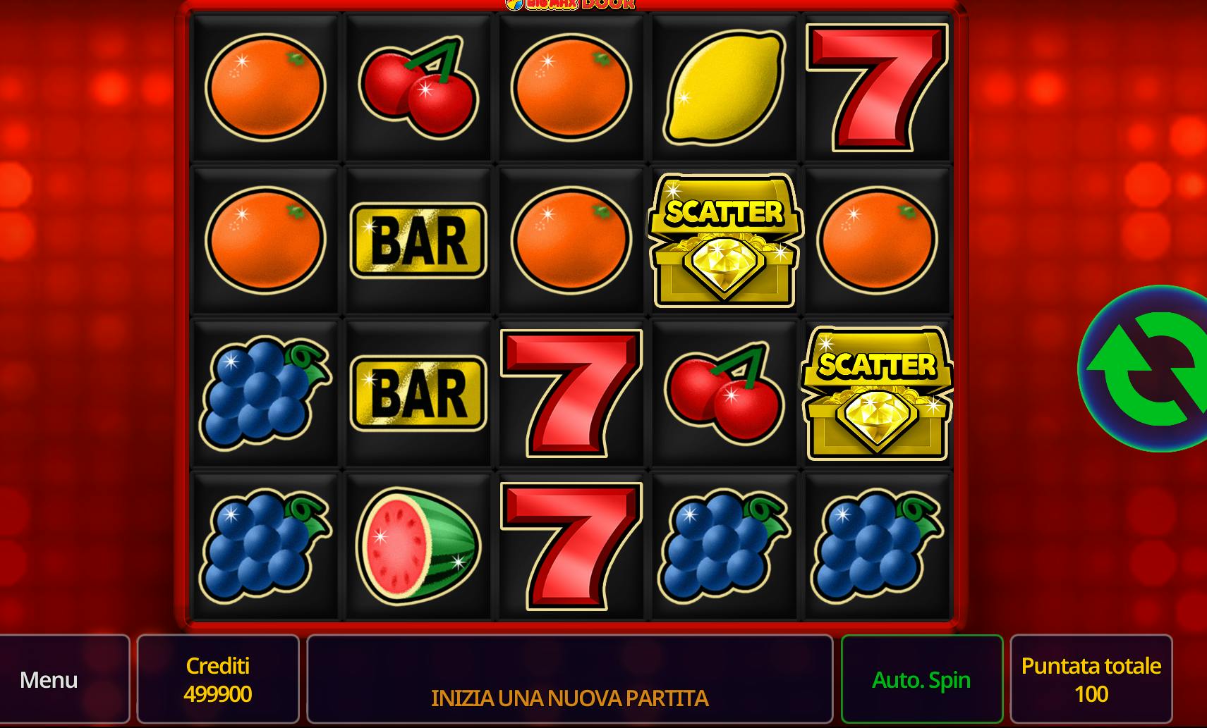 La grafica minimale e i simboli familiari potrebbero far pensare a Big Max Door come all’ennesima slot fruttata senza singoli speciali o funzioni speciali. In realtà non è così. Il layout, più grande del solito, ha 5 rulli, 4 righe e 20 linee di pagamento fisse. I simboli regolari sono 8: la frutta, la scritta BAR e il numero 7, che è anche il simbolo più remunerativo. Presente il Wild, è un jolly e sostituisce tutti gli altri eccetto quelli speciali. È inoltre pagante. C’è poi il simbolo della porta che una volta aperta rivela uno degli altri simboli base o un Wild dorato. Quest’ultimo attiva la Mystery Reveal, una funzione con in palio premi istantanei. Lo Scatter attiva un gioco speciale durante il quale due pile di porte coprono completamente altrettanti rulli, regalando moltiplicatori ad ogni giro.