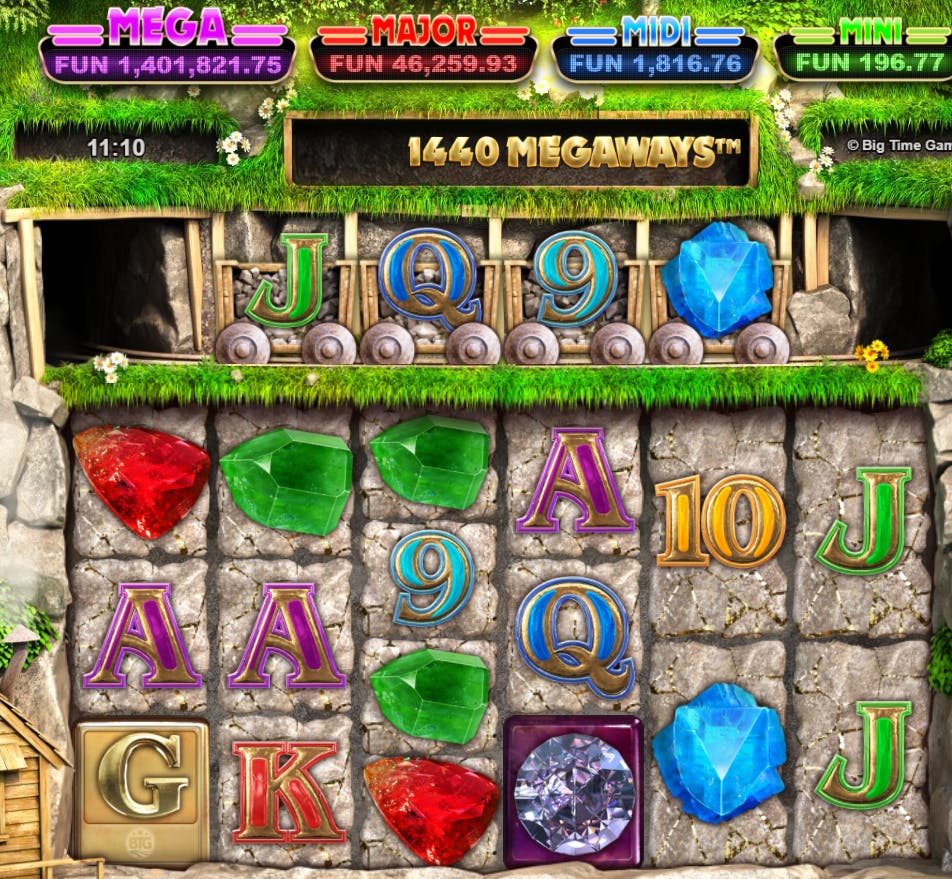 L’ambientazione di questa slot sviluppata da Big Time Gaming è una montagna rigogliosa di alberi, come è facilmente percepibile dallo sfondo, così come dalla colonna sonora. L’accostamento tematico, sia a livello di effetti speciali audio che video, è chiaramente con il mondo minerario e minerale, com’è tradizione.