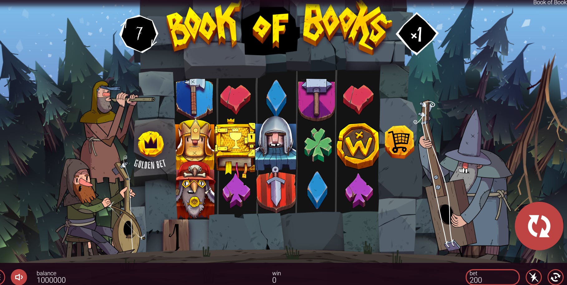 Il tema della slot Book of Books è il Medioevo e vede protagonisti alcuni suonatori di corte. Entrando nel dettaglio, la griglia 5×3 ospita 40 linee di pagamento fisse su cui attorno simboli quali il martello, la spada e il cavaliere. Il re è il simbolo più generoso e ricompensa sino a 75x la puntata. A dire il vero anche il Wild è pagante e vale quanto il re, oltre a ricoprire la naturale funzione di Jolly.