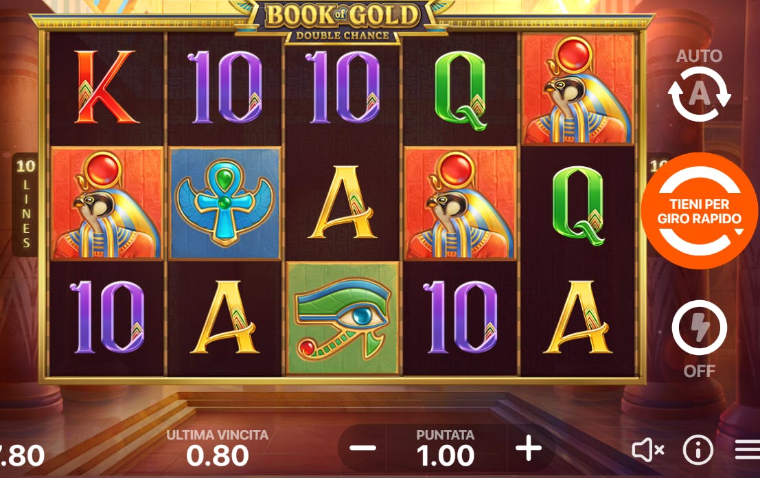 Di seguito una panoramica delle funzioni più diffuse di cui dispone Book of Gold: Double Chance.