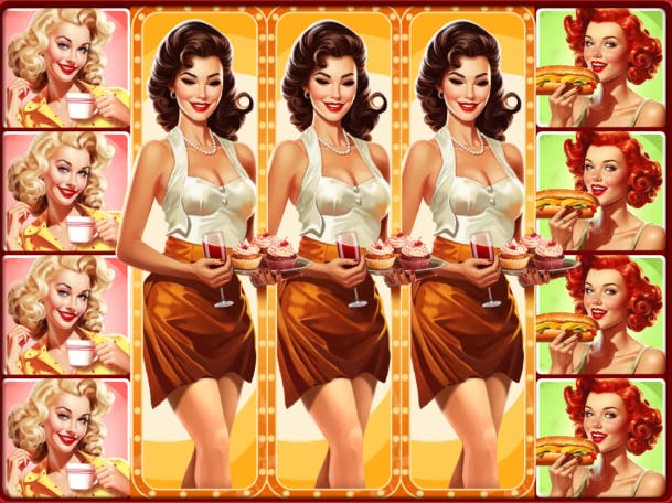 Giocare alla slot Cafe 50’s è come ritrovarsi catapultati all’interno di un bar Anni Cinquanta, con i divani tappezzati di verde, una radio d’epoca sempre accesa e una cameriera pin-up pronta a esaudire ogni vostro desiderio.