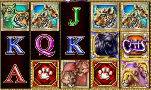 Il nome della slot è fuorviante: il tema infatti non tratta di gatti o animali domestici, ma dei felini più selvaggi che si possono trovare in natura. Abbiamo quindi la natura selvaggia e uno sfondo che ci mostra un bellissimo tramonto.