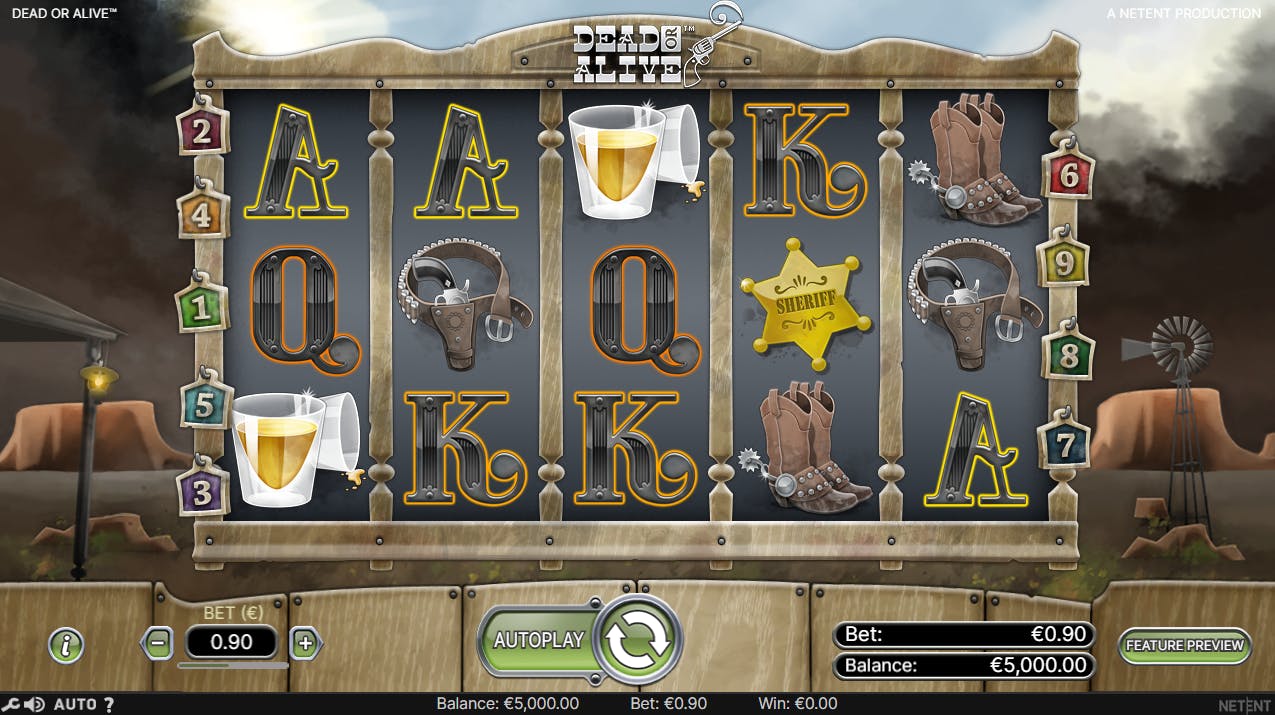 Dead or Alive ha 5 rulli e 3 righe. Si tratta di una griglia classica, con sole 9 linee di pagamento. È una slot incredibilmente semplice da giocare. Ecco i passaggi fondamentali del gioco: