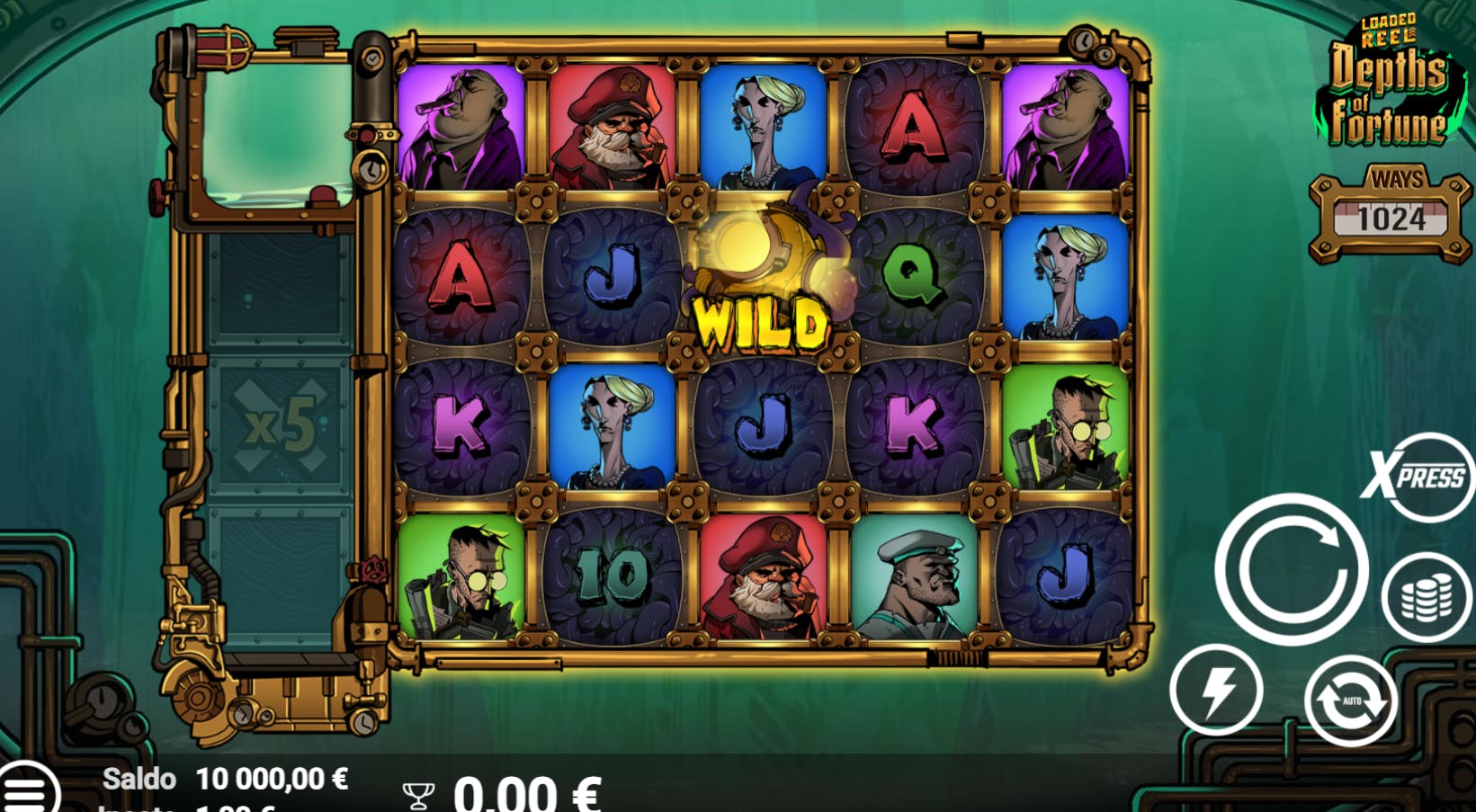 Il primo dato rilevante della slot Depths of Fortune è la vincita massima di 20.000 volte la puntata. Il secondo, è che la griglia 5×4 offre 1.024 modi per vincere, ma grazie alle funzioni speciali può arrivare a 16.807. I simboli sono le carte da gioco, che hanno un basso valore, e i membri dell’equipaggio del sottomarino. Il meccanismo a cascata fa sì che serie di simboli vincenti vengano rimosse e le posizione rimaste vuote siano occupate da nuovi simboli.