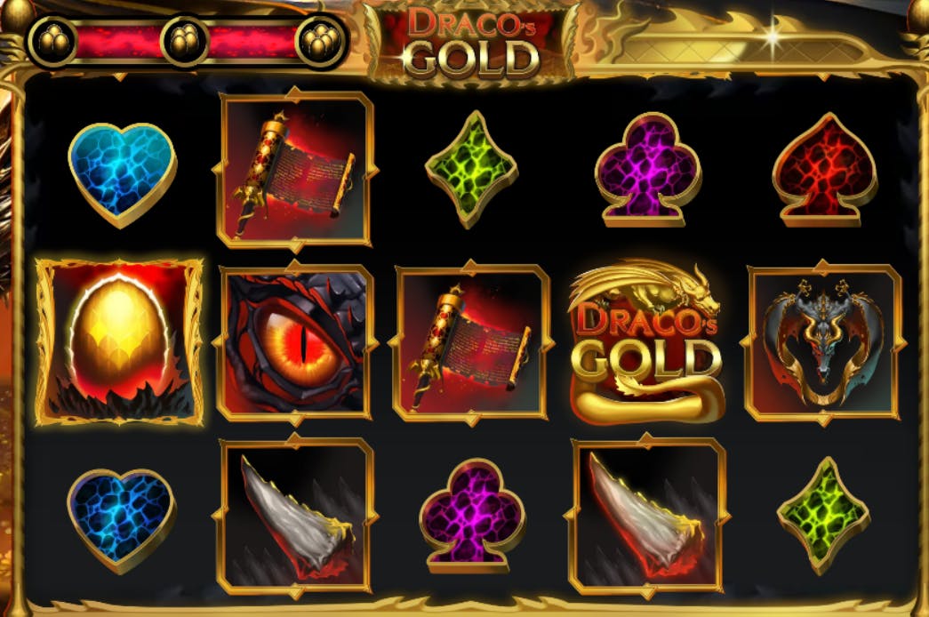 Nata dalla mente di Mancala Gaming, Draco’s Gold è una slot nel complesso elementare che adotta un layout 5×3 su cui sono disposte 40 linee di pagamento fisse. La puntata minima è di 0,40 €. L’imponente grafica si fa sentire nei simboli di basso livello (i semi delle carte da gioco) e nei simboli tematici, legati al mondo dei draghi. Il Wild sostituisce tutti i simboli e durante il gioco base potrebbe espandersi casualmente. Invece durante i giri gratuiti è sempre a espansione, oltre ad essere accompagnato da un moltiplicatore x2, x3, x5 e x7. Con 3 simboli Scatter si attivano 10 free spins, che diventano 15 e 30 se gli Scatter sono rispettivamente 4 e 5. L’uovo dorato è un altro simbolo speciale che regala premi istantanei. La funzione Bonus può essere acquistata in qualsiasi momento al costo di 54 volte la puntata.