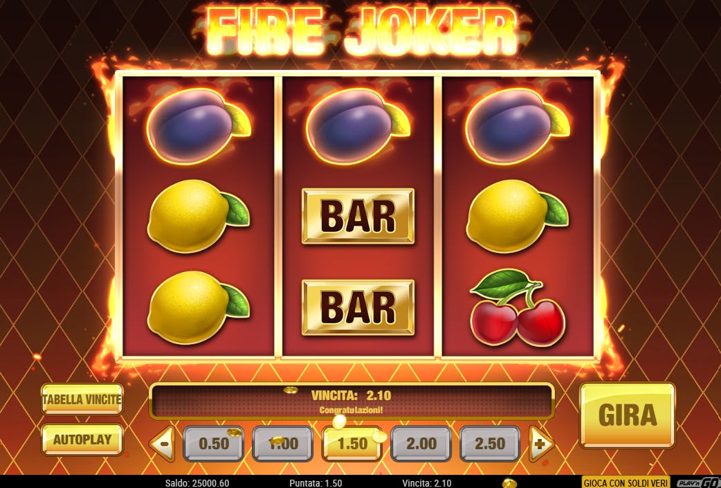 Fire Joker, come anche tutti gli altri giochi prodotti da Play’n Go, dispongono anche di una versione demo oltre a quella base. La particolarità di questa versione è quella di poter giocare al gioco, con le stesse dinamiche e lo stesso divertimento, ma senza dover effettuare un deposito, utilizzando una moneta virtuale fornita dalla piattaforma che poi ovviamente non potrà essere prelevata. Questa modalità può essere molto utile, principalmente per due scopi: per potersi godere il puro divertimento del gioco, senza dover pensare all’aspetto economico, in totale tranquillità; oppure per fare pratica ed allenarsi, memorizzando i meccanismi di gioco, in vista di un successivo investimento.
