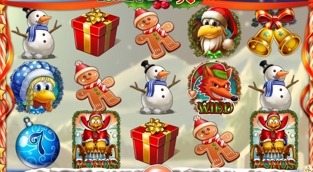 Il gioco bonus nell’edizione natalizia della slot ti trasforma in un aiutante di Babbo Natale. La funzionalità si attiva quando compaiono 5 simboli scatter sui rulli. Lo scopo è mettere più regali possibile nella slitta, ogni regalo aggiudica un premio. Attento, una volpe cercherà di rubare i tuoi regali e le relative ricompense. Nel gioco bonus puoi anche trovare un moltiplicatore x5 associato all’uovo d’oro.