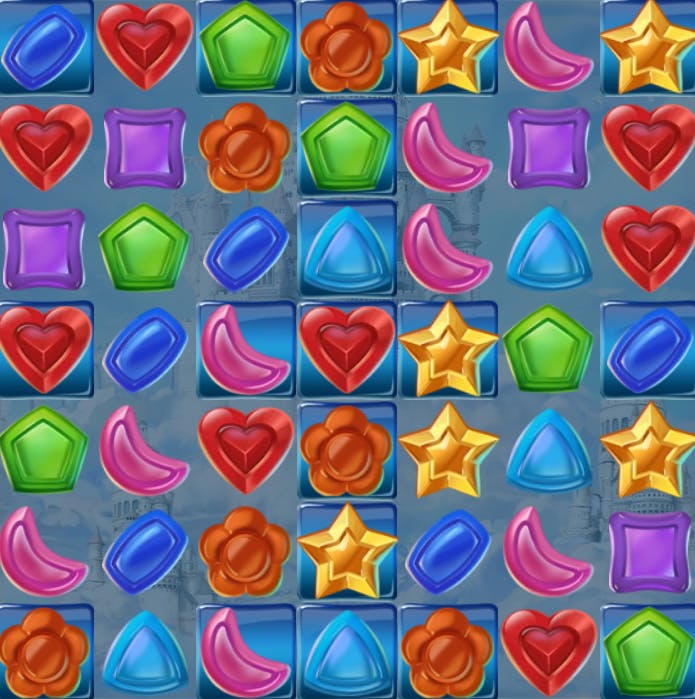 - 8 gemme di varie forme e colori, ognuna con un valore diverso: si va dal rettangolo blu fino alla stella dorata che è la più preziosa