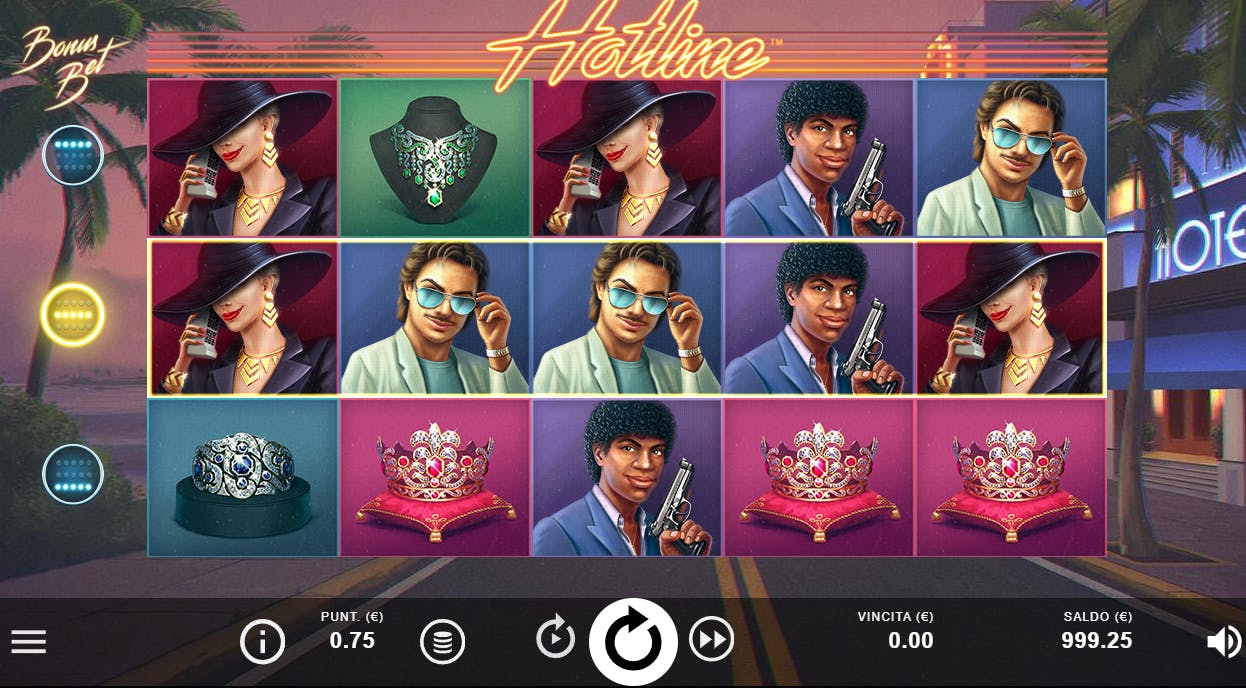 Hotline è disponibile sia in versione a pagamento che gratuita, puoi trovare questa seconda versione anche sul nostro sito DailySpin. Per poter giocare alla cosiddetta versione demo non avrai bisogno di effettuare un deposito né tantomeno di registrarti o effettuare l’accesso. Potrai facilmente goderti il piacere del videogioco senza dover pensare ai soldi, e ciò può essere molto utile per prendere familiarità con i meccanismi della slot, cosicché, nel momento in cui vorrai passare alla versione a pagamento, avrai abbastanza esperienza per sapere come muoverti.