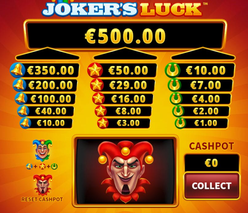 “Jokers Luck” ha una puntata minima di 0,01 cent e una massima di 200 Euro per spin.