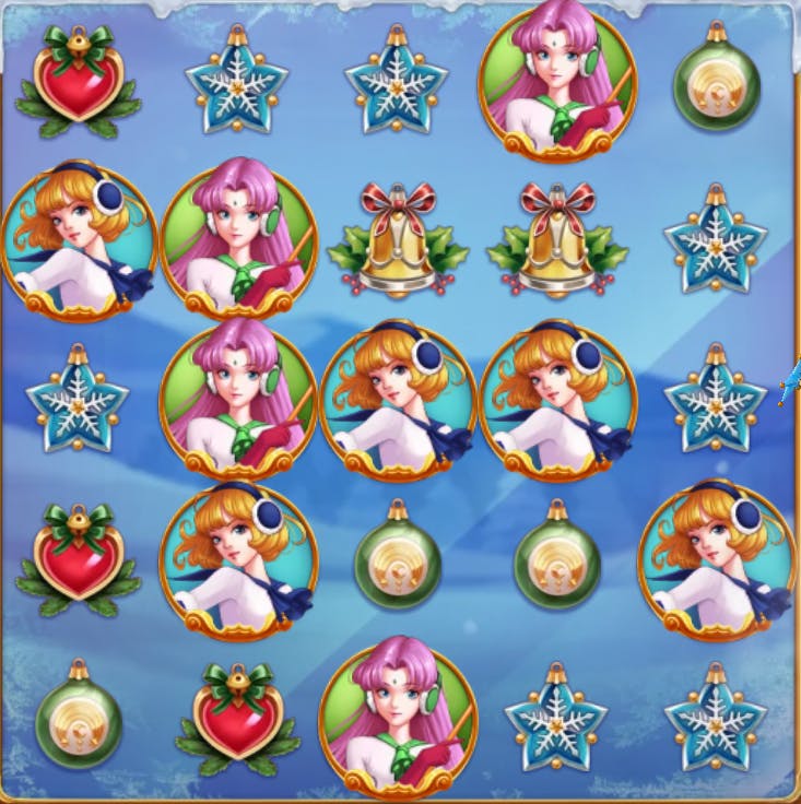 A distinguere i simboli di Moon Princess: Christmas Kingdom è il tocco natalizio. Tutte e tre le principesse sono bardate contro le temperature rigide indossando dei simpatici paraorecchi, mentre gli altri 4 simboli sono diventati dei simpatici addobbi per l’albero di Natale.