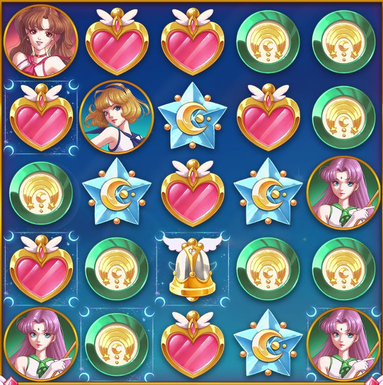 Su Moon Princess Trinity i simboli sono in totale 8. Per ognuno di essi dovrai far comparire almeno 3 simboli corrispondenti sui rulli vicini, per ottenere una vincita. Il miglior risultato lo ottieni però con 5 icone uguali, che atterrano su rulli adiacenti in linea orizzontale o verticale.