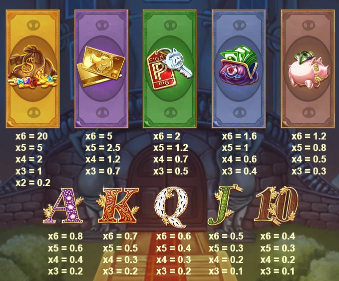 Il tema ricorrente è quello della ricchezza, e lo rappresentano alla perfezione i nostri protagonisti della slot, due animali che vogliono mostrare a tutti i costi la loro infinita ricchezza. Ciò viene mostrato anche dai simboli del gioco e dalle loro animazioni, il tutto orientato verso il denaro, probabilmente per darti un’immagine molto concreta di ciò che stai vincendo mentre trascorri il tuo tempo giocando a Piggy Riches Megaways.
