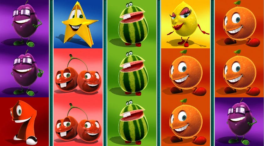 Una semplicissima slot a tema frutta, ma rivisitata in veste più simpatica e irriverente. I simboli che rappresentano i frutti sono antropomorfizzati e resi molto più appaganti per chi in una slot cerca anche la bellezza estetica e del divertimento. La griglia è un classico 3×5 e l’assenza di funzioni bonus o dinamiche particolari contribuisce a rendere il gioco molto intuitivo e alla portata anche di quei giocatori che provano un gioco di slot per la prima volta.