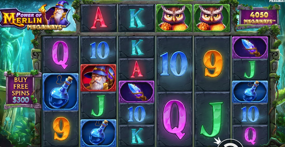 Con Power of Merlin Megaways vieni catapultato al centro di una foresta con alberi imponenti e rovine di un’antica civiltà. Il verde è il colore dominante dello sfondo dove compare anche il logo della slot. In questo viaggio nel mondo della magia medievale ti accompagnerà una melodia solenne e incalzante sempre presente insieme al cinguettio degli uccelli. Grafica e simboli sono animati e diventano spettacolari in occasione dei free spins, accompagnati da straordinari effetti sonori.