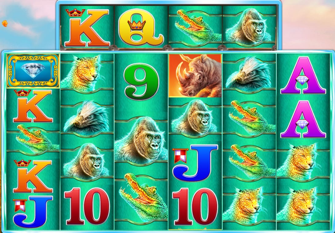 Oltre a tutti i rulli classici che possono essere trovati anche in altre slot machine, Raging Rhino Megaways risulta provvista anche di un ulteriore rullo in cima a tutti gli altri. La cosa interessante consiste nel fatto che tutti i simboli ottenuti su questo rullo addizionale andranno a combinarsi con gli altri rulli del corpo principale della slot machine!