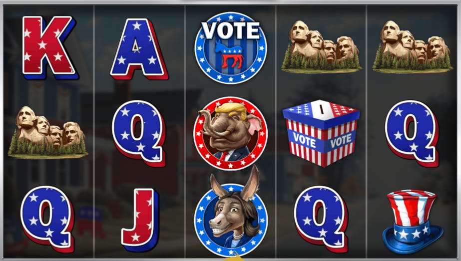 In Red vs Blue: Spin to Win giocherai con un Wild pagante che sostituisce tutti i simboli eccetto lo Scatter, ossia la testa dell’aquila simbolo degli Stati Uniti. Con 3, 4 o 5 Scatter si ottengono rispettivamente 10, 15 o 20 free spins. Prima che si avvii la funzione, si dovrà però scegliere uno dei due schieramenti: optando per i Repubblicani, fazione rossa, i simboli dei candidati e dei badge assumeranno un valore compreso tra 2 e 50 volte al puntata. Scegliendo i democratici, insieme ai simboli sopracitati appariranno dei moltiplicatori compresi tra x1 e x4.