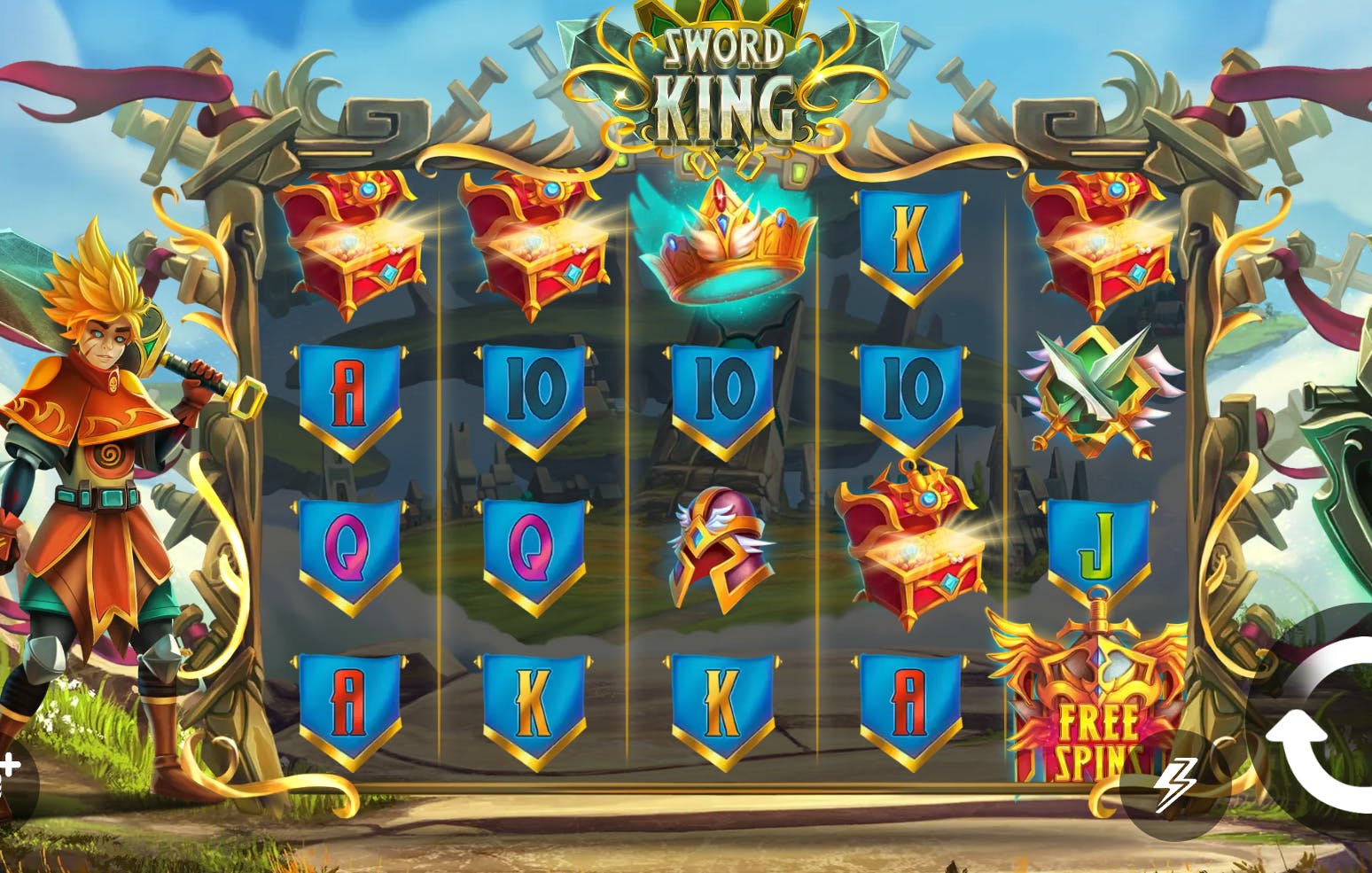 Slot di stampo medievale, Sword King di Swintt è un gioco con un RTP del 94,74% e una griglia dotata di 5 rulli, 4 righe e 20 linee di pagamento fisse. Gli stendardi con impressi i valori delle carte da gioco dal 10 all’A rappresentano i simboli a basso pagamento, mentre l’elmo, le spade incrociate, il forziere e la corona sono quelli più generosi. Il re è il Wild, sostituisce tutti i simboli ma non gli Scatter. Il re è anche presente al lato della griglia e attiva due funzioni speciali, la prima che offre un respin dopo un giro non vincente, la seconda che aggiunge alcuni Wild sui rulli. Un’altra funzione interessante è Spade in Caduta, per la quale ogni volta che atterra uno Scatter, si illumina una parte dello scudo del re che si trova alla destra della griglia. Quando è completo, dall’alto cadono da 3 a 5 spade che rilasceranno simboli Wild.