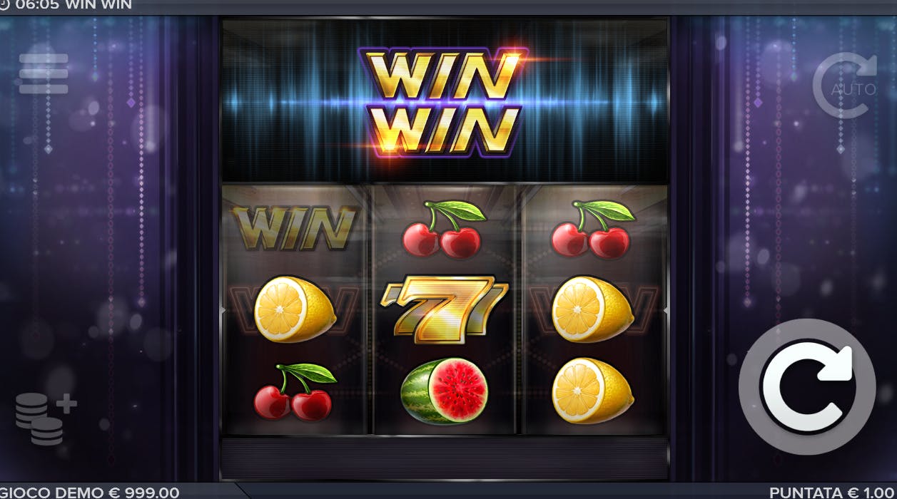 La modalità automatica del gioco ti permette di effettuare molte giocate consecutive, puoi infatti scegliere tra 10, 25, 50 oppure 100 spin consecutivi da realizzare tutti con la stessa puntata presente al momento dell’attivazione del gioco. Solitamente per questo tipo di modalità possono essere aggiunti dei vincoli, che arrestino il gioco in caso in cui il saldo totale vada al di sopra o al di sotto di limiti prestabiliti, ma su Win Win questo non è possibile, quindi ti consigliamo di utilizzare questa funzione con molta cautela.