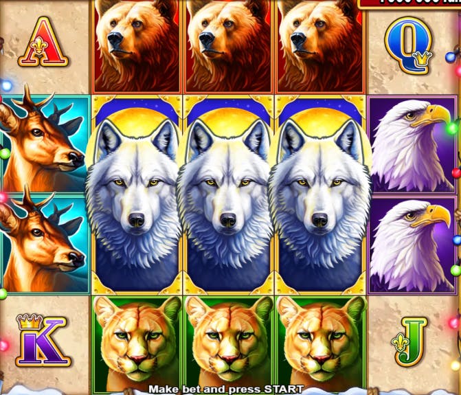 Con Winter Thunder, il provider Belatra Games ci porta in una landa desolata ricoperta dal ghiaccio. Nonostante la presenza di diversi animali tipici delle nevi, il tema del gioco è il Natale, come si evince dalle luci colorate attorcigliate alla griglia e dai pacchi regalo che caratterizzano il gioco bonus del tipo Hold and Win. Il layout ha una conformazione 5×4 con 25 linee di pagamento fisse su cui far atterrare serie di simboli identici partendo dal rullo di sinistra e procedendo verso destra. Analizzando il paytable, vediamo che le 4 carte da gioco pagano meno di tutti, mentre l’aquila, la lince, il daino, l’orso e il lupo offrono ricompense più alte. Il lupo è anche il Wild, occupa due posizioni del rullo e sostituisce tutti i simboli base. Lo Scatter è invece indispensabile per accedere ai Free Spins. Il numero massimo di giri gratis ottenibile è 40, a cui corrisponde anche il valore del moltiplicatore da applicare alla vincita totale.