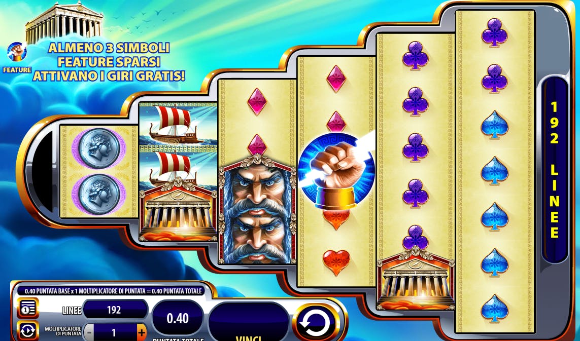 Wild, scatter e freee spins con moltiplicatore annesso danno pepe al gioco, inoltre a determinate condizioni il simbolo Zeus può diventare un wild impilato che genera vincite molto alte.